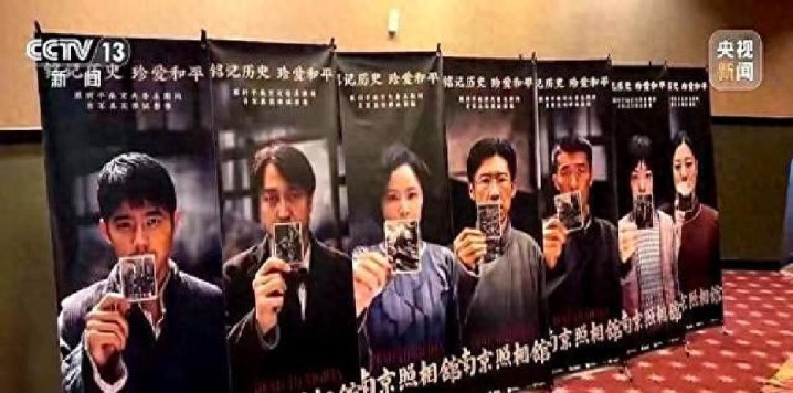 第一,图像与文字成为现场的核心媒介。牛仔服大叔放大的“1937”黑白照片、牌子上的“30万”“必须记住”、老太太的“永不忘记”,它们不做复杂叙述,而是用最简约的方式引导观看。与电影题目“照相馆”相呼应,照片本身就是证据与记忆的载体,观众从银幕带出影像,转化为街头的公共提示,媒介属性在不同场域接续发挥作用。