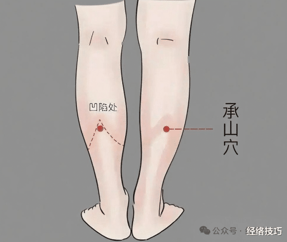 搭配着按揉承山穴也是可行的,承山穴处于小腿后面,当你用力踮起脚尖时,小腿肚下方会出现一个呈人字形的肌肉,那个缝隙顶端凹陷的地方就是承山穴,它和昆仑穴都在膀胱经上,一起上下按揉,能够让整条经络的气血更加通畅。